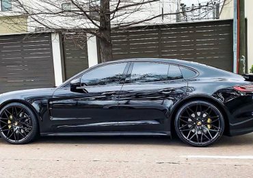 This Porsche Panamera is a luxury 4-door sedan fitted with Giovanna wheels called Kilis featuring an all black finish. These high performance rims are available in black, silver with black anodized fa…